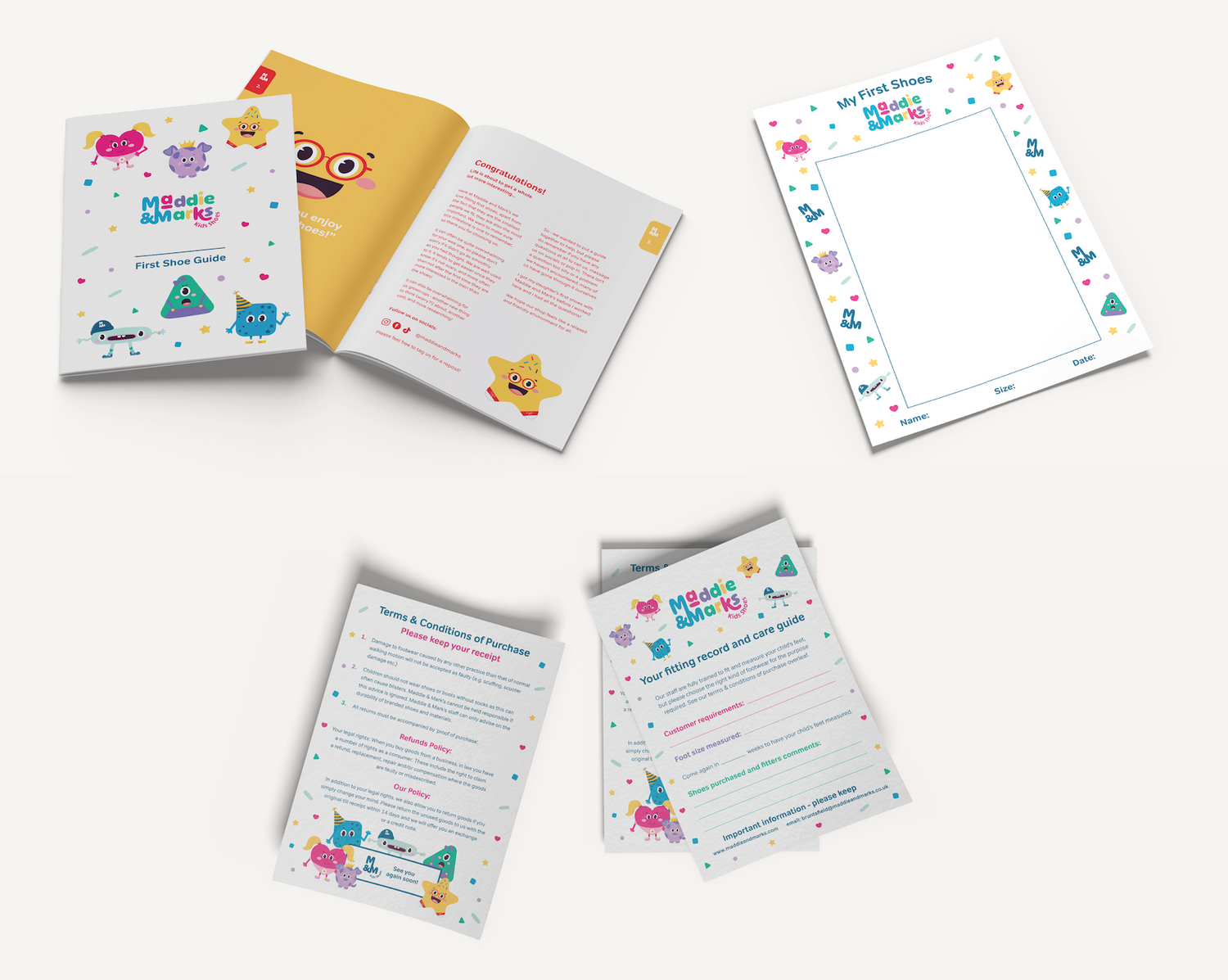 We take pride in our fitting service, babies first shoes are a huge milestone, and one of the founding reasons Maddie and Marks was started. We try and make first shoes as special as possible, so please do book an appointment to ensure you are seen quickly. To add to the experience we will give you a first shoe picture to take away as well as a handy booklet with lots of information in it to help you on this journey.