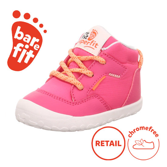 Superfit first walkers combine the ideal fit with a natural barefoot feel. The thin sole with its cute bear motif on the underside and extended lip offers great toe protection. The striking laces not only ensure a perfect fit but are a real eye-catcher.