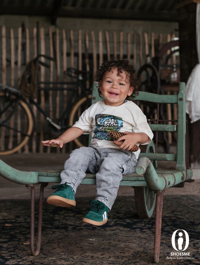 Every inch of this shoe is designed to optimally support the little feet while learning to walk independently. This cool dark green sneaker has a unique fit, which is perfectly tailored to the phase your little one is in.