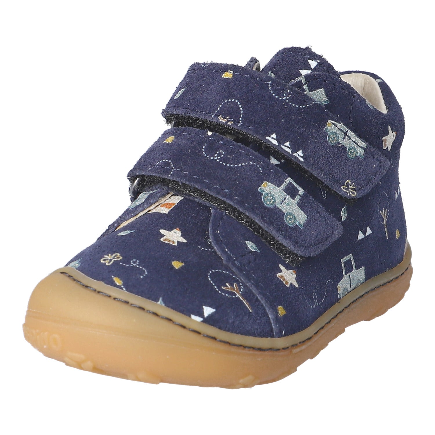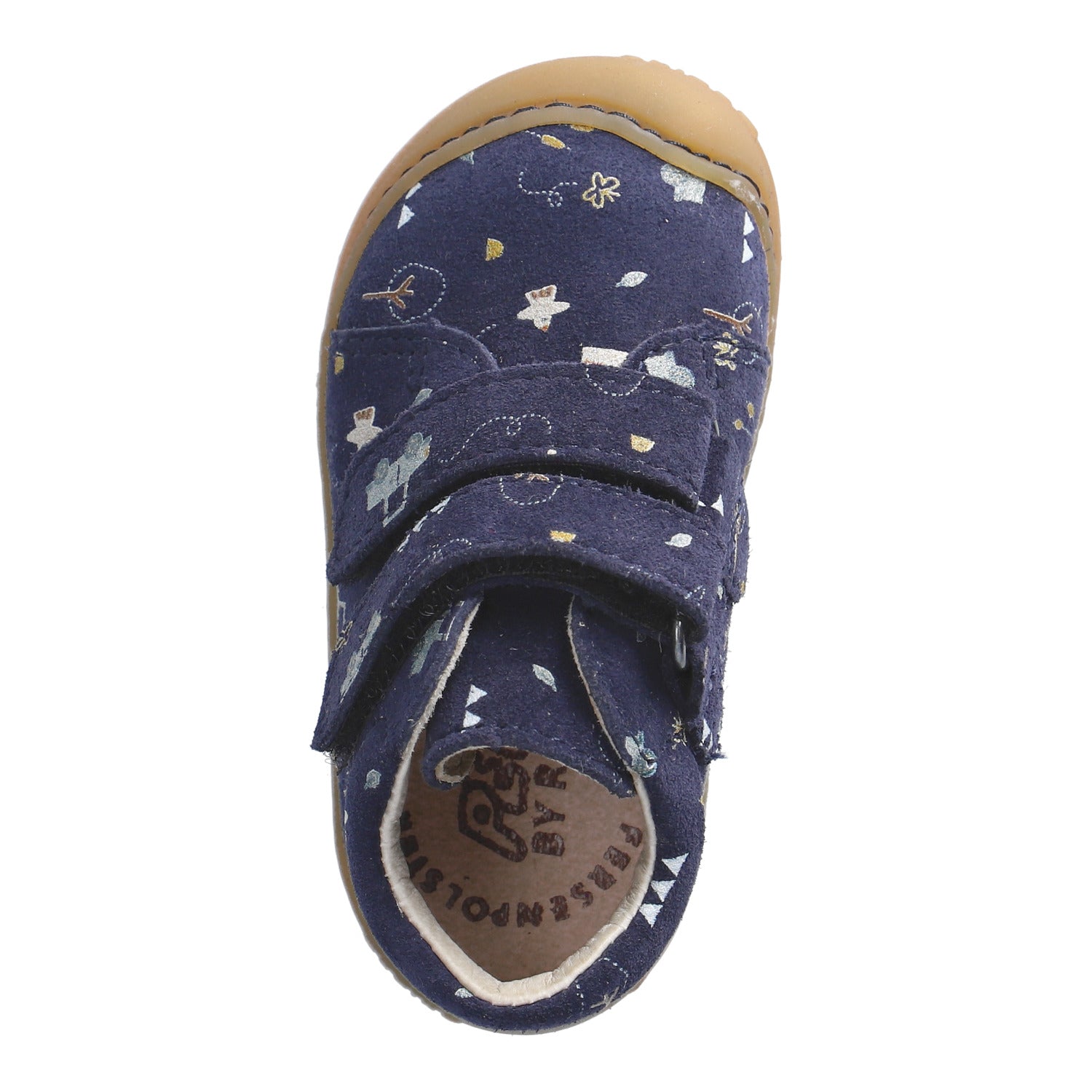 Ricosta Carly is a wonderfully soft and flexible first boot, designed to support little explorers with great rubber soles that offer superb grip and boost confidence. Crafted from premium leather and suede with leather lining, it features double velcro straps for a snug fit.