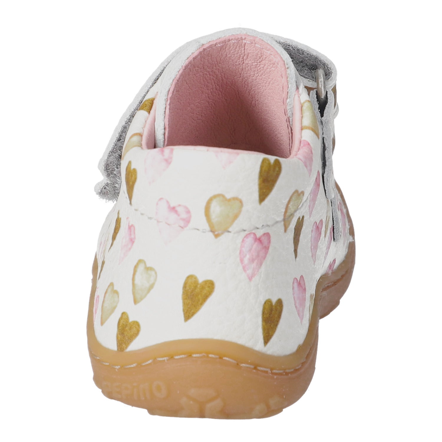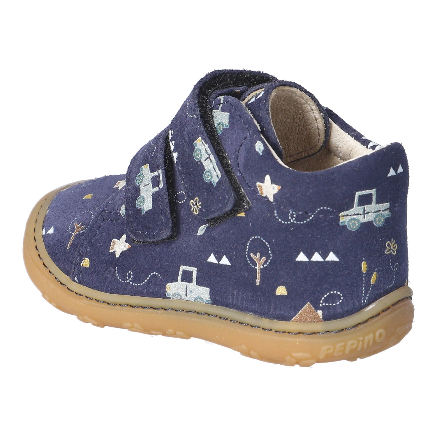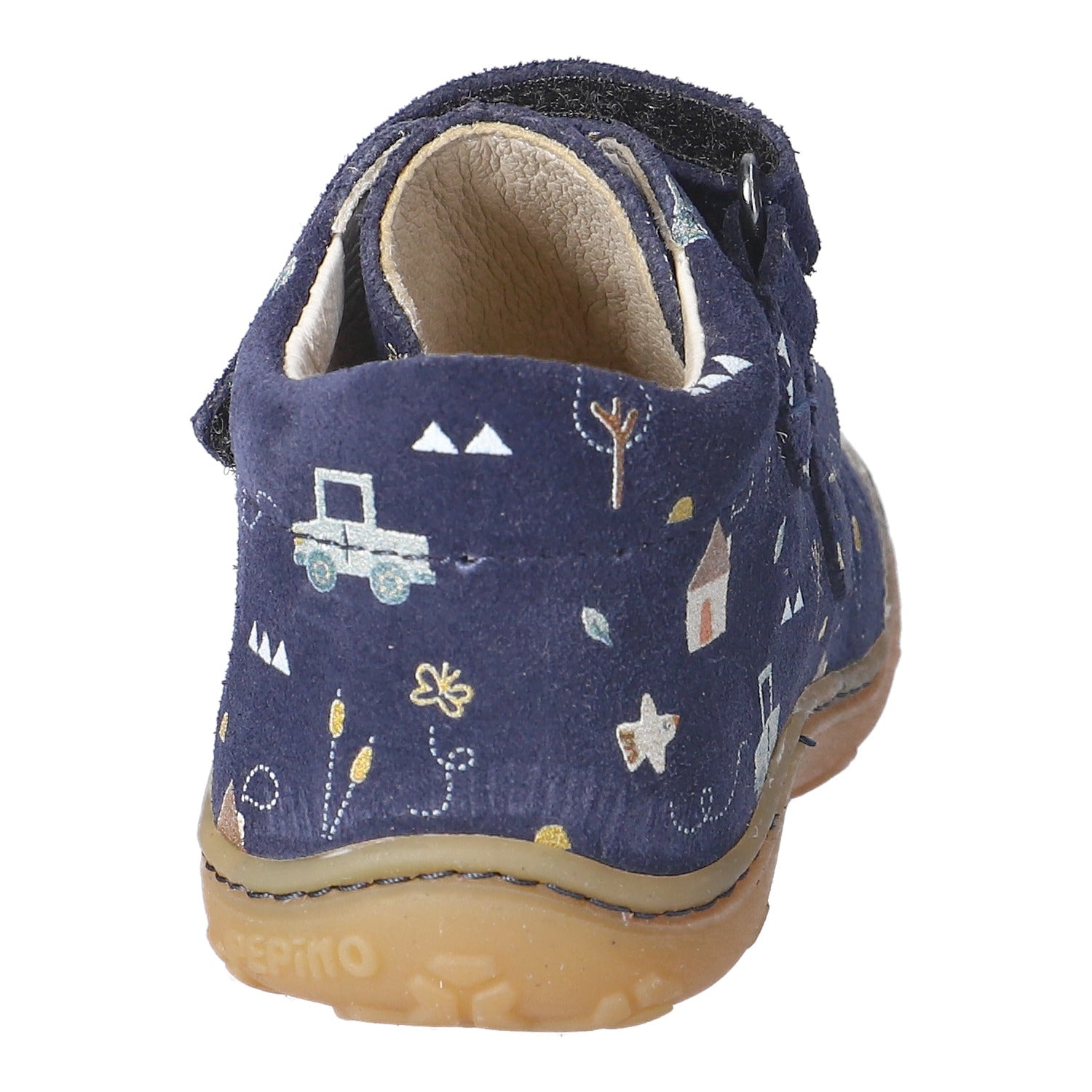 Choose the sweet heart print in leather or the navy version adorned with playful vehicles and wildlife on suede.