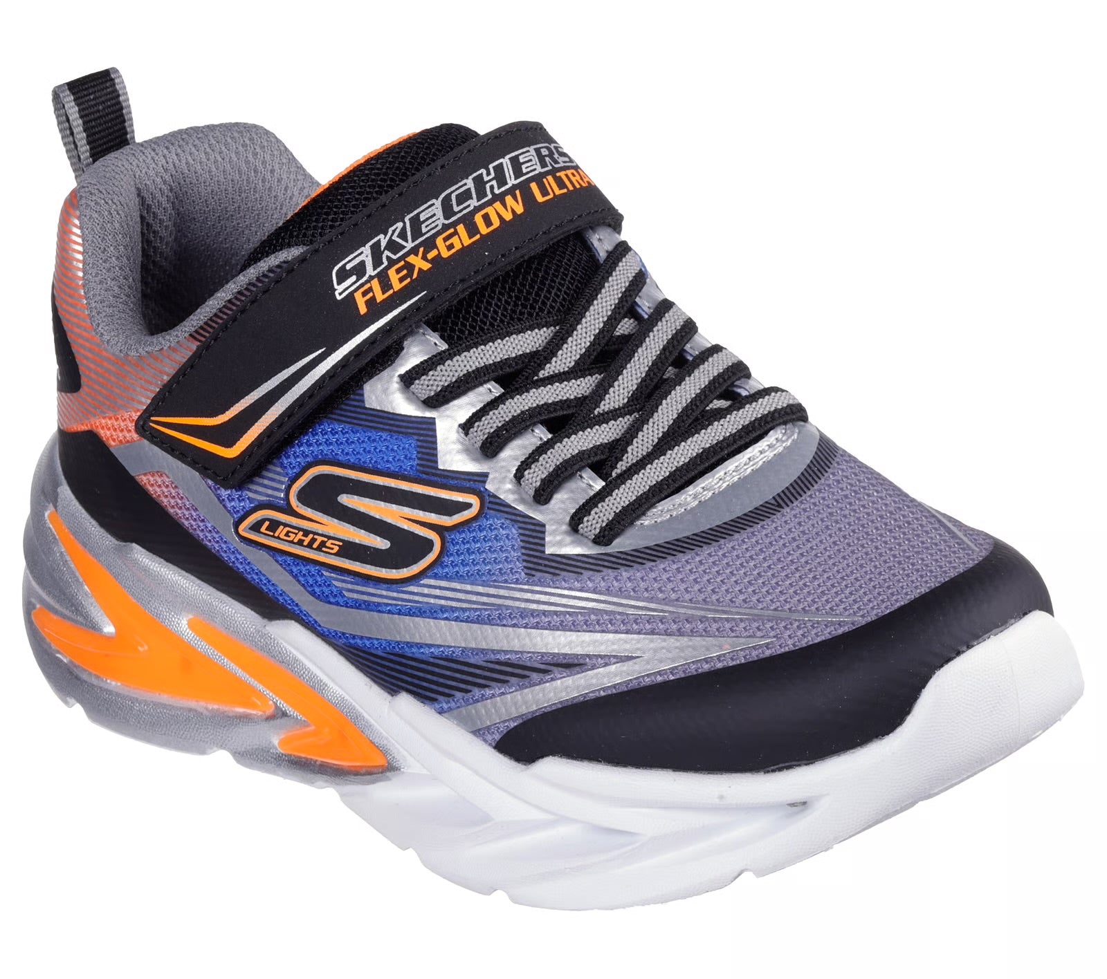 Rev up their day with the bright fun of Skechers S-Lights®: Flex-Glow Ultra. This coulorful sneaker features an ombre mesh upper with synthetic overlays, fixed stretch laces and Adaptive Closure, plus a tech-pieced light-up midsole.