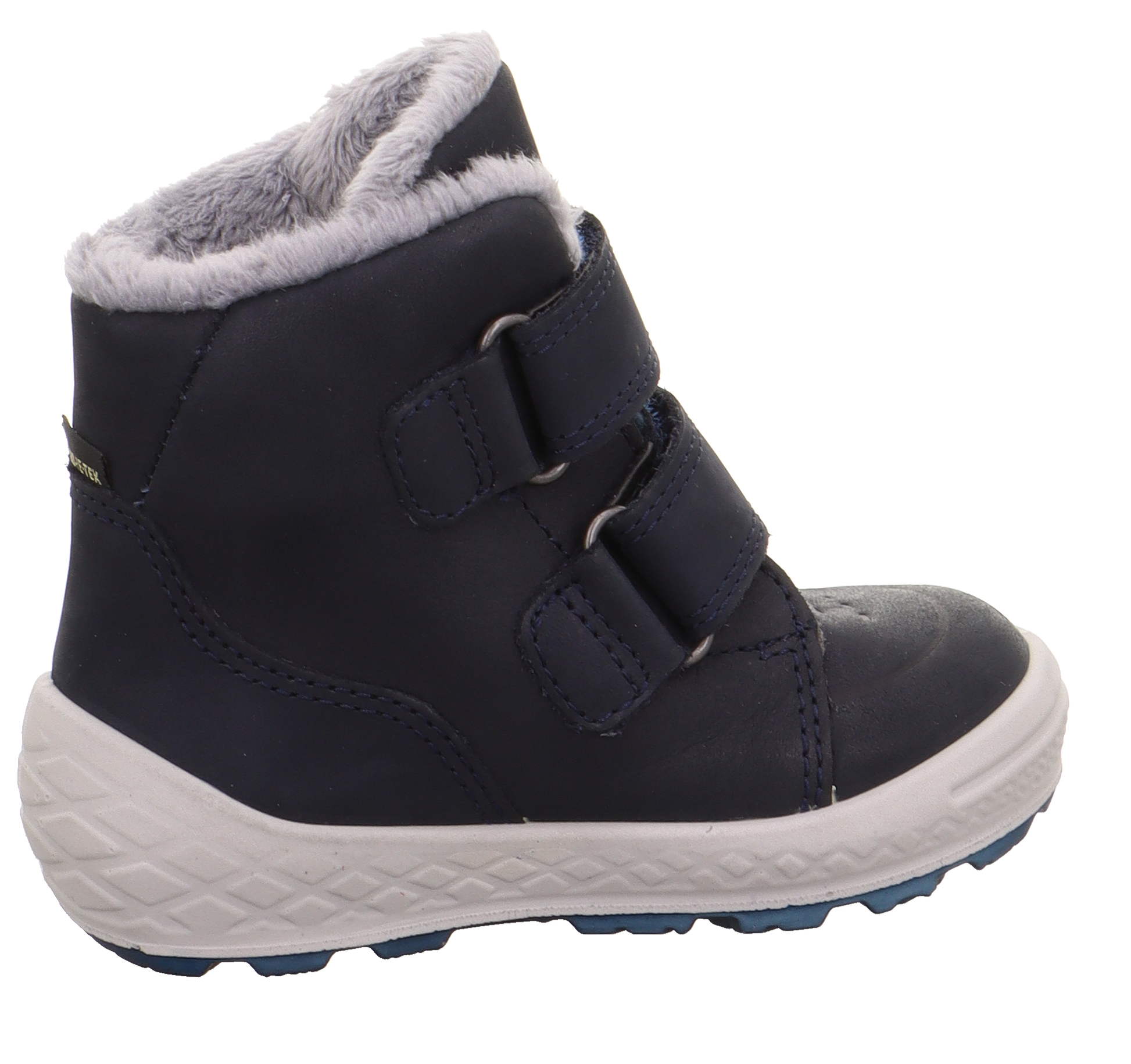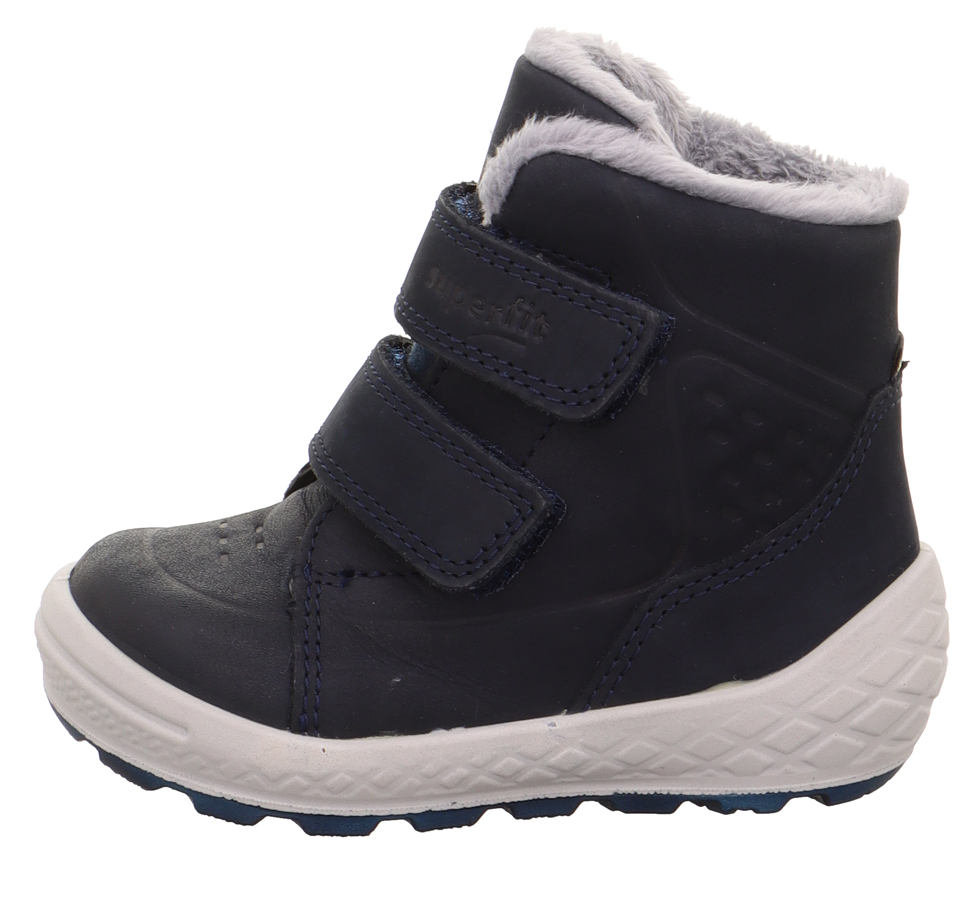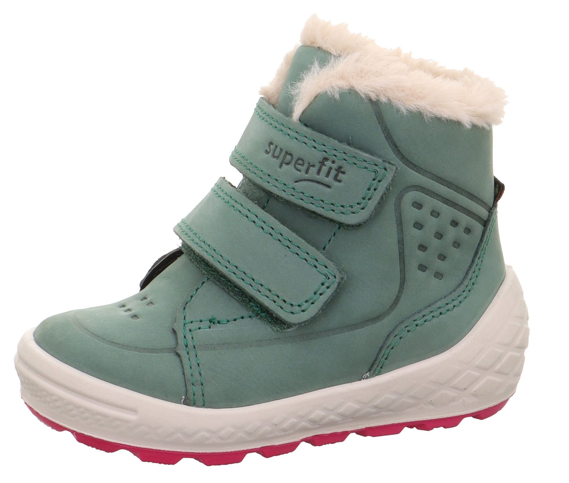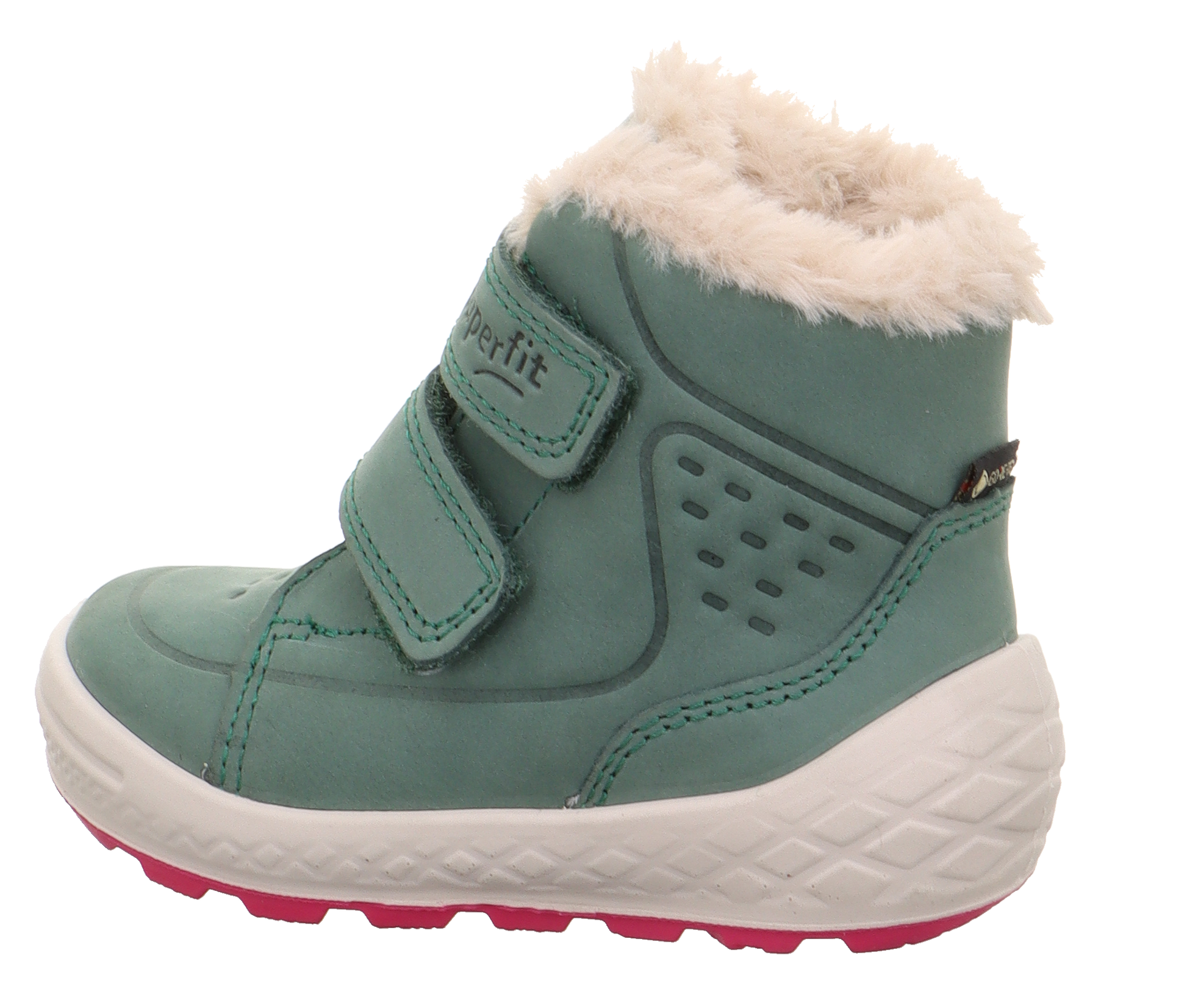 These little Superfit GROOVY Goretex boots are pure sporty fun! Ideal for lively kids who love to stay warm and dry no matter where adventure takes them. Made with super soft nubuck leather featuring charming embossing, these cosy superfit shoes are a joy to wear. The plush collar and padded top add extra snugness, while the two-tone sole with a dynamic diamond pattern offers both style and unbeatable grip.