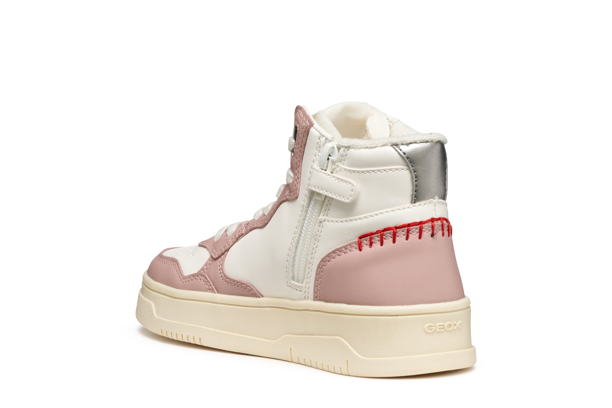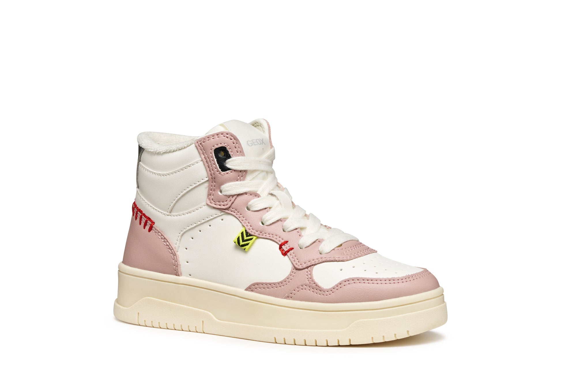 Sneaker with an attractive contemporary design which bridges the gap between sporty lines and glam details. This white and pink version has been made from a leather-effect material to guarantee durability and comfort on a day-to-day basis. Lestrella is the perfect way to complete children’s sporty styling for everyday activities.